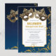 Mit dieser atemberaubenden Einladung laden Sie Ihre Gäste zu einem glamourösen Halloween-Maskenball ein. Mit goldenen Masken, einem wackeligen Hintergrund und vergoldeten Wirbel im Glitzer Set, ist es der perfekte Ort für ein elegantes und geheimnisvolles Ereignis.