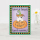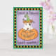 Senden Sie Halloween-Grüße mit dieser Karte eines niedlichen Miniatur Bull Terrier Welpen in einem lächelnden Jack-o-Lantern. Ideal für Kinder jeden Alters, die MBTs und Halloween Lieben. Viel Glück!