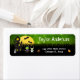 Adorable Halloween-Frankenstein-Monster neben einem krummen Spuk Haus. Im Hintergrund ist ein Vollmond mit Fledermäusen und ein grüner Nachthimmel mit Sternen. Grafiken von MujkaDesign, PrettyGrafik und PixelPaperPrints