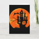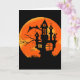 Ein unheimliches Bild eines gruseligen Spuk Hauses, mit einer fliegenden Fledermaus über dem Kopf, das ganze Set gegen einen blutorangen Vollmond zu Halloween.