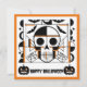 Ein gewagtes und modernes Halloween-Design mit einem geometrischen Bauhaus-Stil Schädel, Fledermäuse, Spinnennetze und Kürbissen in klassisch schwarz, weiß und orange. Ideal für sportliche Liebhaber der Saison, die eine stilvolle Drehung auf traditionelle Halloween-Kunst gewollt haben.