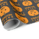 Ein Halloween-Packpapier mit Kürbissen und ein "Happy Halloween"-Text.