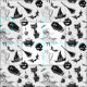 Halloween-Objekte auf dem Papier gezeichnet, dann in Illustrator zurückverfolgt, um Muster zu erstellen.