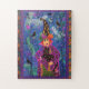 Überdimensionierte große Stücke in diesem Puzzle sind perfekt für Kinder. Eine zauberhafte Rotkopfhexe hält ihre schwarze Katze an einem mysteriösen Halloween-Abend, während drei schelhafte Krähen in den toten Bäumen herumkrachen, während zwei Geister und viele Fledermäuse im Himmel fliegen. Ein lustiges Familienprojekt zu Halloween oder einfach nur zum Spaß! Lebhafte, helle Farben.