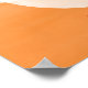 Ein niedliches kleines Gespenst lächelt glücklich, während es über einen Sherbet-Orange-Hintergrund schwebt und einen Strauß von Sturzblüten als bezaubernde Jack-o'-Laterne-Gleichgewichte oberhalb des Geistes hält. Originelle Illustration von Noël Snow