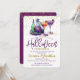 Eine wunderschöne lila und goldene halloween Open House Party Einladung. Dieses lila und grüne Design besticht durch spitzige Zauberflaschen und zwei Cocktailbrillen. Einfach mit Ihren eigenen Halloween-Party-Details anpassen.