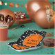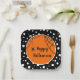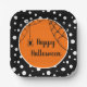 Die Papierplatte aus Halloween-Party wird in einem schwarz-weißen Polka-Dots-Design mit Spinnennetz gedruckt. Passen Sie dieses Objekt an oder kaufen Sie, wie es ist. In 7" Größe angezeigt. Verkauft in Paket mit acht. Bild