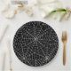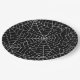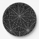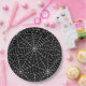 Die Papiertafel aus Halloween-Party wird mit einem spitzigen Spinnennetz auf schwarzem Hintergrund dargestellt. Passen Sie dieses Objekt an oder kaufen Sie, wie es ist. Verkauft in Paket mit acht. Lizenziertes Bild