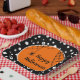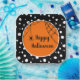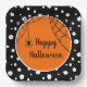 Die Papierplatte aus Halloween-Party wird in einem schwarz-weißen Polka-Dots-Design mit Spinnennetz gedruckt. Passen Sie dieses Objekt an oder kaufen Sie, wie es ist. In 9" Größe angezeigt. Verkauft in Paket mit acht. Bild