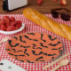 Papierplatte aus Halloween-Party mit Fledermausdruck. Passen Sie dieses Objekt an oder kaufen Sie, wie es ist. Börsenbild vecteezy.com
