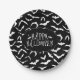 This paper plate is shown with a Happy Halloween bats print.