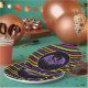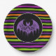 Die Papiertafel aus Halloween-Party wird mit einem festlich gestreiften Druck angezeigt. Farben Schwarz & Orange Multi. Passen Sie dieses Objekt an oder kaufen Sie, wie es ist. Lizenziertes Bild