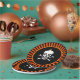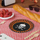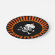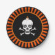 Halloween-Schädel auf schwarz-orange Papierplatte.