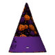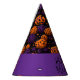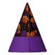 This party hat is shown in a Halloween colors of pumpkins print.