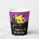 Diese lustige und spukhafte Papiertasse besticht durch eine niedliche Hexe neben einem gekräuselten Spuk Haus. Im Hintergrund ist ein Vollmond mit Fledermäusen und ein lila Nachthimmel mit Sternen. Das ist perfekt zu Halloween.