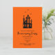 Einfaches, modernes, schwarz-orangefarbenes Design mit einer Silhouette eines spukhaften Spuk Hauses mit einer Katze vor der Tür, einer Eule auf dem Dach und darüber fliegenden Fledermäusen. Die Rückseite der Karte weist ein Muster aus abwechselnd dicken und dünnen diagonalen Streifen auf. Klicken Sie auf 'Personalisieren' und passen Sie Ihren eigenen Text an. Für weitere Anpassungen (z.B. die Hintergrundfarbe ändern, Elemente verschieben, Schriftart ändern usw.) klicken Sie auf "Design bearbeiten". Viel Spaß beim Halloween Housewarming Party!