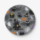 Hübsches Halloween-Muster mit Fledermäusen, Katzen, Spinnen, Gespenstern, Kürbissen, Spuk Haus, Lollipops.
