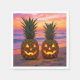 Halloween Pineapple Jack-o-lanterns On a Beach Serviette