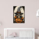 Poster mit einem Ausdruck eines Halloween-beängstigenden Schädels. Passen Sie dieses Objekt an oder kaufen Sie, wie es ist. com