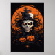Poster mit einem Ausdruck eines Halloween-beängstigenden Schädels. Passen Sie dieses Objekt an oder kaufen Sie, wie es ist. com
