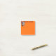 Post it note ist in einer orangefarbenen Farbe mit einem festlichen Eukalyptusprint zu sehen. Passen Sie dieses Objekt an oder kaufen Sie, wie es ist. Lizenzierte Printwerbung