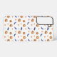 Festive Halloween phone case featuring pumpkins, bats, and candy corn in a playful repeating pattern. A fun and spooky design for the holiday season.