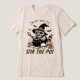 Halloween Raccoon Wizard Funny Modern Tri-Blend Shirt enthält den Text "On my way to sticking the pot" in der modernen Schriftzeichen-Typografie mit einem Raccoon-Zauberer, der einen Kessel umwirbelt, der von Zauberbüchern, einem Schädel, Kürbis und Fledermäusen umgeben ist. Ideal für Halloween-Partys und Feiern auf dem Lande. Erstellt von Evco Studio www.zazzle.com/store/evcostudio