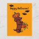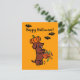 Halloween Red Smooth Haar Dackel Postcard für Dackel Fans! Einzigartige und lustige Dog Art gemalt von Naomi Ochiai aus Japan. Eine bezaubernde Red Smooth Hair Dackel mit Pumpkin Hat ist Sprichwort Trick oder Treat!