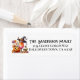 Begrüßen Sie das alljährliche Halloween-Party, die Halloween-Babydusche oder jede Veranstaltung mit diesem lustigen und einfachen Rücksendelabel. Ein einfaches Schwarz-Weiß-Gesamtbild, das eine Mischung aus einfacher Schrift und Schrift-Typografie hat. Ein Spuk, schwarzes Haus mit orangefarbenen Pop aus orangefarbenen Kürbissen und Jack-Laternen. Ein paar niedliche kleine Gespenster und Fledermäuse runden diesen lustigen Look ab. Spooky Black Orange Spuk House Bats Ghost Happy Halloween Party Rücksendetikett