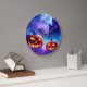 Fröhliche Halloween-Wanduhr mit herrlichen Kürbissen im Jack O' Lantern-Stil, alter Burg und Vollmond für ein aufregendes Halloween-Party... Lass uns deine Welt färben!!