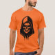 Männer's Halloween Shirt ist in Orange mit einem Schädelprint dargestellt. Passen Sie dieses Objekt an oder kaufen Sie, wie es ist.