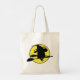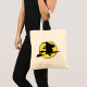 Eine halbrunde Hexe Silhouette auf einem Besen gegen die Sonne. Dieses Design sieht auf dieser Totbeutel wirklich effektiv aus