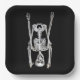 Skelett auf schwarzem Hintergrund mit einem Kopfstand.