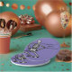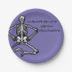 Party Papierplatte lila mit einem Halloween Skelettdruck gezeigt. Die Größe ist 7 Zoll. Passen Sie diese Platte an oder kaufen Sie, wie es ist.