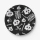 BOO! Bekomme jetzt keine Angst. Niedliches Halloween-Skelett, das Spaß macht und trick oder behandelt. Schwarze Kontur Illustration von niedlichem beängstigendem Skelett, Schädel und Knochen in Stücken mit schmelzendem Wachskandal. Das perfekte zeitgenössische Halloween-Kunstdesign, ideal für ein Halloween-Geschenk, Geburtstagsgeschenk, Halloween-Party-Dekoration, Kinderzimmer-Dekoration, Kinderspielkunst, Wohngestaltung und Halloween-Bekleidung.