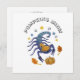 Eine charmante Halloween-Illustration mit einem freundlichen, stilvollen blauen Skorpion mit einem fröhlichen Verhalten. Unter ihm Erholungen ein klassischer Kürbis, vorbereitet für die spooky Saison. Oben trägt ein Stern zur festlichen Atmosphäre bei, während die Herbstblätter verstreut sind. Der prominente Text oben sagt spielerisch: "Es ist Zeit, kochen zu können... etwas Lustiges." Das Gesamtdesign verbindet traditionelle Halloween-Elemente mit einer einzigartigen, skurrilen Touch.