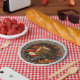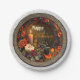 Festliche Halloween-Teller mit Blumenkranz mit Kerze und Kürbis und einer großen Spinne