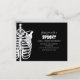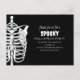 Spooky Skeleton X-Ray design will sure to make your Halloween gathering extra eery. Watch out for ghouls and ghosts. A whimsical drawing of a Halloween skeleton with an X-Ray effect, black and white outlines, and charcoal effects. This design features a Halloween party spooky scary fun with a QR code website online, an rsvp scan scannable URL, a creepy black and white skeleton, a cute whimsical funny cute, a Halloween budget postcard invitation, a whimsical typography script, handwritten script calligraphy, a scary Halloween skeleton spine, a modern sketch drawing cartoon