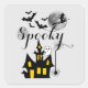 Halloween Spooky Spider Fledermäuse mit Spuk Haus Quadratischer Aufkleber