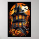 Treten Sie ein in eine Welt unheimlicher Verzauberung mit diesem faszinierenden Halloween-Poster. Aus den Schatten entsteht ein Spuk, in sprichwörtlicher Dekoration eingerichtetes Herrenhaus. Fledermäuse fliegen über den Nachthimmel, ihre Silhouetten fügen eine Touch von Mystik hinzu. Am Eingang des Hauses befindet sich ein gemeißelter Kürbisgrins mit einem ansonsten weltlichen Charme. Dieses Poster erfasst die Essenz von Halloween's sprichwörtlich-takulärer Anziehung, wo das Spuk und das Festliche in einem bezaubernden Spektakel zusammenlaufen.