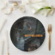 Großartiges Papierartikeldesign für Ihr nächstes Halloween-Party! Die Spuk Treppe mit Geist, Eule und Kandelabra ist mit einer künstlerisch-digitalen Malerei versehen. Anpassbare Textüberlagerung im Graustufenstil