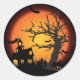 Rundform Aufkleber in einem Halloween Spuk Hausprint. Passen Sie dieses Objekt an oder kaufen Sie, wie es ist.