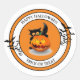 Dieser große runde Aufkleber wird in einem niedlich festlichen Halloween-Katzenaufdruck und Kürbisprint gezeigt. Passen Sie dieses Objekt an oder kaufen Sie, wie es ist.