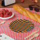 Ein gewagtes, schwarz-orangefarbenes Halloween-Design, das klassische, spukhafte Farbtöne mit einer modernen Drehung verbindet. Die scharfen, abwechselnden Streifen sorgen für ein festliches Ambiente, das sich perfekt für die Dekoration des Party, saisonale Accessoires und all Ihren Trick-oder-Leckerei-Spaß eignet.