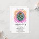Ein gewagtes Halloween-Party mit einem Orange-, Türkis- und Hot-Rosa-gestrichenen Zuckerschädel auf einem Kreideboden mit einem eigenartigen Schriftart. Auf der Rückseite der Karte steht heiß rosa. Sicher, dass sie aufpassen!
