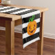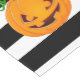 Tischläufer, um Ihre Tischdekoration zu betonen, wird in einem Schwarz-Weiß-Streifen-Print-Design mit Halloween-Druck gezeigt. Passen Sie dieses Objekt an oder kaufen Sie, wie es ist. Börsenbild vecteezy.com