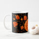 Dramatisch handgezeichnet Jack-o-Lantern Pumpkin und Blätter auf schwarz für Ihre Halloween-Feiern auf einer Tasse, die mit einer Nachricht, Namen oder Initialen personalisiert werden kann.