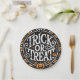 Feiern Sie Halloween mit diesem festlichen "Trick or Treat" Teller! Dieser Teller mit fett weißem Schriftzeichen auf schwarzem Hintergrund ist mit klassischen Halloween-Ikonen wie Zuckermais, Kürbissen und einem schelenden Fledermaus geschmückt. Die Akzente in Orange und Weiß verleihen dem Design-Pop einen strahlenden Charme, der das Halloween-Party und die Dekoration noch angenehmer macht. Egal, ob Sie Leckereien servieren oder einfach nur als Dekorationsstück darstellen, dieser Teller fängt den lustigen und spielerischen Geist von Halloween an.