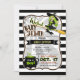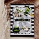 Mauvais invitation de baby showers ! Mignonne, vert citron, noir, gris orange, jaune et blanc baby shower d'Halloween sur motif à rayures noir et blanc. Dispose de sorcière verte et noire volant sur balai et pot noir avec brasserie sorcière et polices amusantes. C'est un garçon qui peut être changé en fille pour baby showers de bébé ou de fille ! Idéal pour les baby showers d'Halloween d'octobre ! invitation vintage en forme de support.