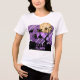 Schwarze Halloween-Kreaturen auf Lavendelboden und Großmond